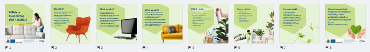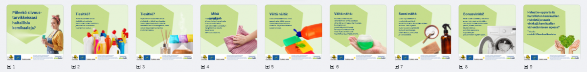 Tästä osiosta löydät käyttösi valmiita sosiaalisen median materiaaleja haitallisista kemikaaleista viestimiseen. Tiedostot ovat ladattavina zip-kansioina. Materiaalit ovat osa laajempaa sosiaalisen median kampanjaa, jota toteutettiin LIFE ChemBee -projektissa vuosina 2024-2025.